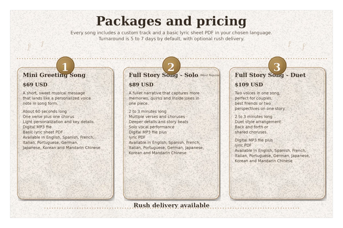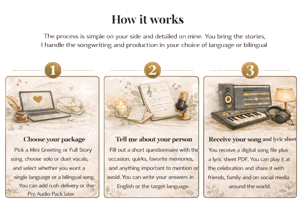 Every song is thoughtfully created and meant to be enjoyed as a personal gift.